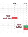 ??9日14:55〜45分コースまで 1枠 ??11日17:00〜60分コースまで 1枠