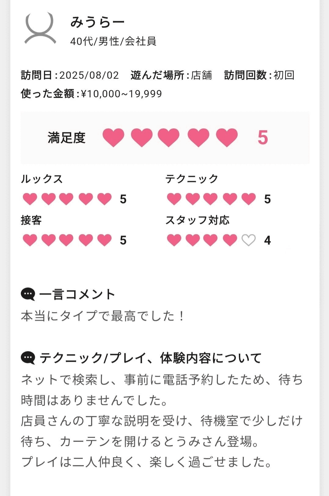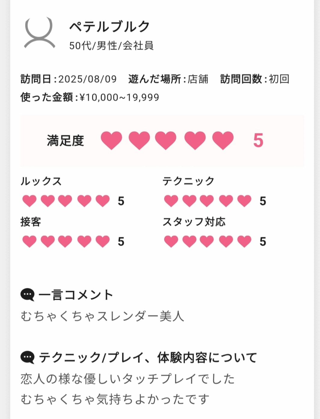 こんにちは(」・ω・) 今日は日傘を差すには 微妙な天候でしたので UVカットのカーディガンで 対応していますι(´Д`υ)アツィー でも晴れてきたような… 口コミがたまっていたので、 まとめてで申し訳ないのですが 感謝の気持ちをお伝えさせてください! 時間があっという間に感じるほど 私とのお時間を堪能してくださり 嬉しい限りでございます⭐️✨ 褒められすぎて恥ずかしい…笑 私を見つけてくださって ありがとうございます*\(^o^)/* たっぷりイチャイチャできて 仲良く楽しく、素敵なお時間でした! またお会いできるのを 楽しみにしています٩(*ˊᵕˋ٩*) たくさんのお褒めのお言葉、 本当にありがとうございます❣️ 気持ちよくなっている姿を見ると 私も気持ちよくなれます(*´˘`*)♡ ぜひ、惚れちゃってください… あまり褒められすぎてしまうと 調子に乗ってしまうので…ヾ(・ω・`;)ノ たまには喝も入れてくださいね! みなさま本当にありがとうございます❤ |