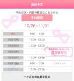 こんにちは、しおんです??♀? 来週の予定出ました〜! なんと、水曜日以外全部居ます〜! 予定が合わないとは言わせないっ!? ハロウィン付近はコスプレするかもしれないし、しないかも知れません! 当日のお楽しみにゃり? 事前予約大歓迎、時間調整相談はオキニトークまで? 待ってるねーっ! |