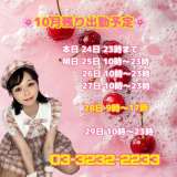 10月も残り数日の出勤となりました? たくさん出勤するぞ!で始まり気づけば月末! たくさんの出会いと再会今月もできて嬉しいです? 残り本日含めて6日!!! まだ今月会えてないお兄様に逢えますように?*゜ 本日も23時までいます!! お仕事終わりの駆けつけお待ちしております?? 今週もお疲れ様会しましょ??? |