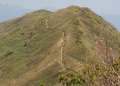 振り返ったら歩いてきた稜線と、その後ろには苗場山が見えて、なかなか前に進めない時の写真